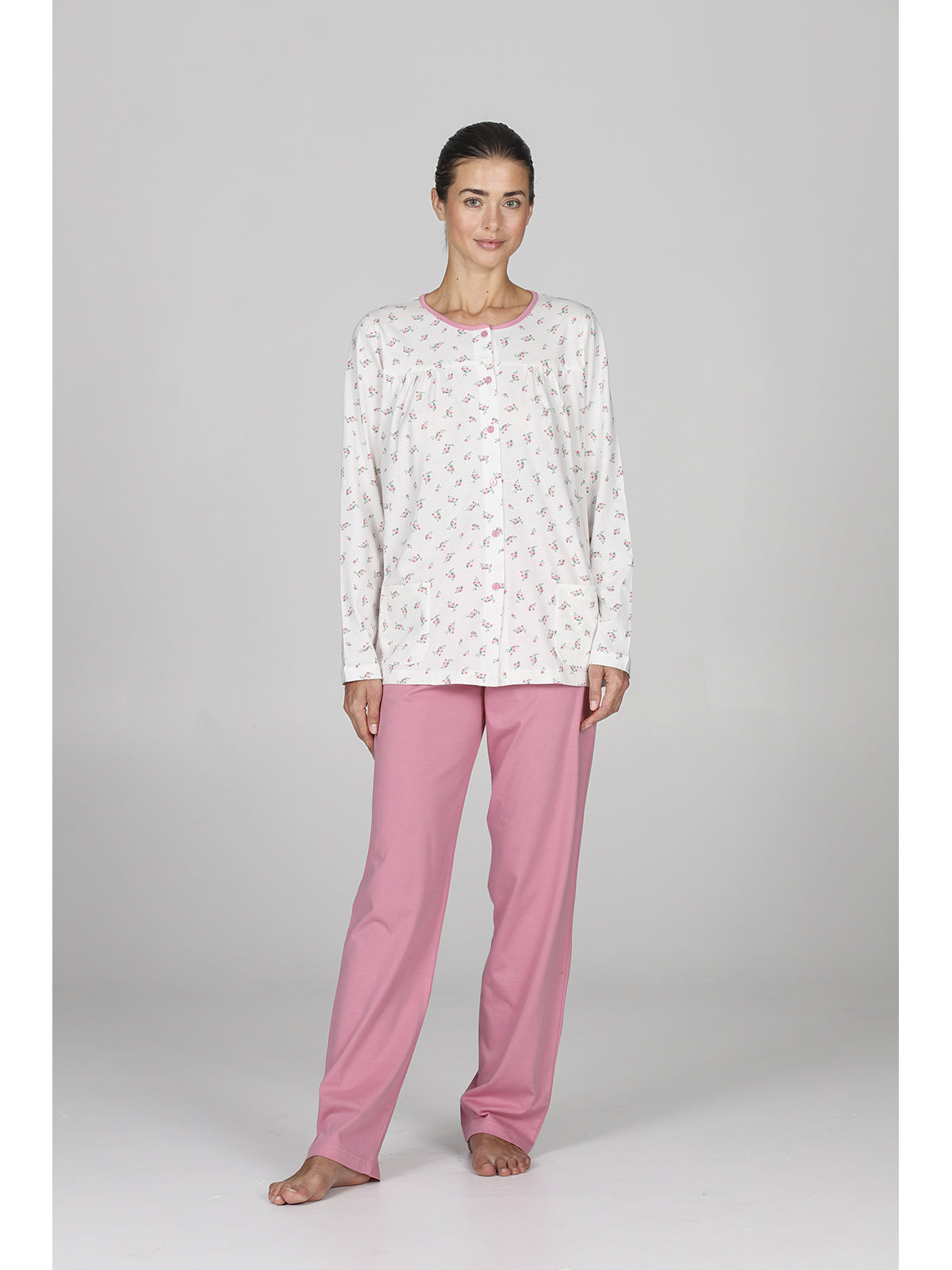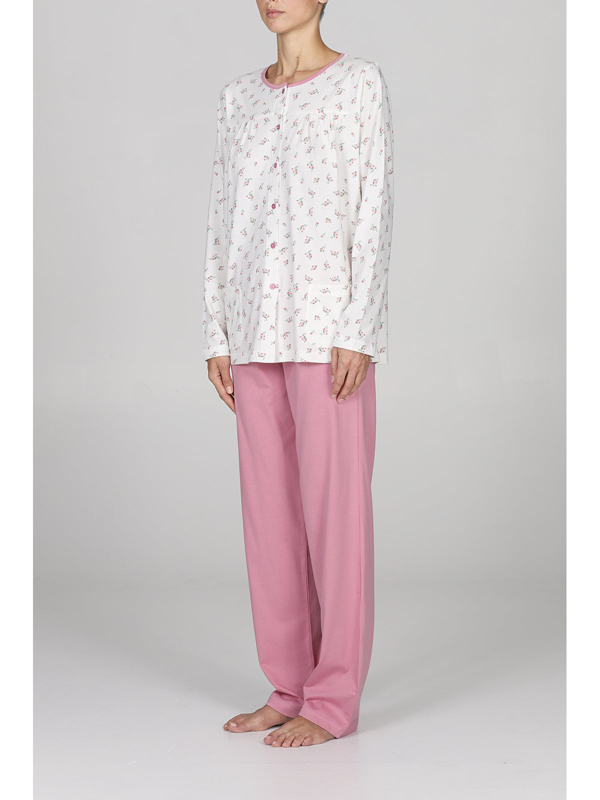 Sogni momenti di puro relax? Scopri l'eleganza con questo cardigan lungo in morbidissimo cotone, perfetto per le tue serate a casa. Il suo scollo rotondo, arricchito da delicati bottoncini, e il design floreale lo rendono non solo comodo, ma anche irresistibile. Indossa il comfort senza rinunciare alla classe.