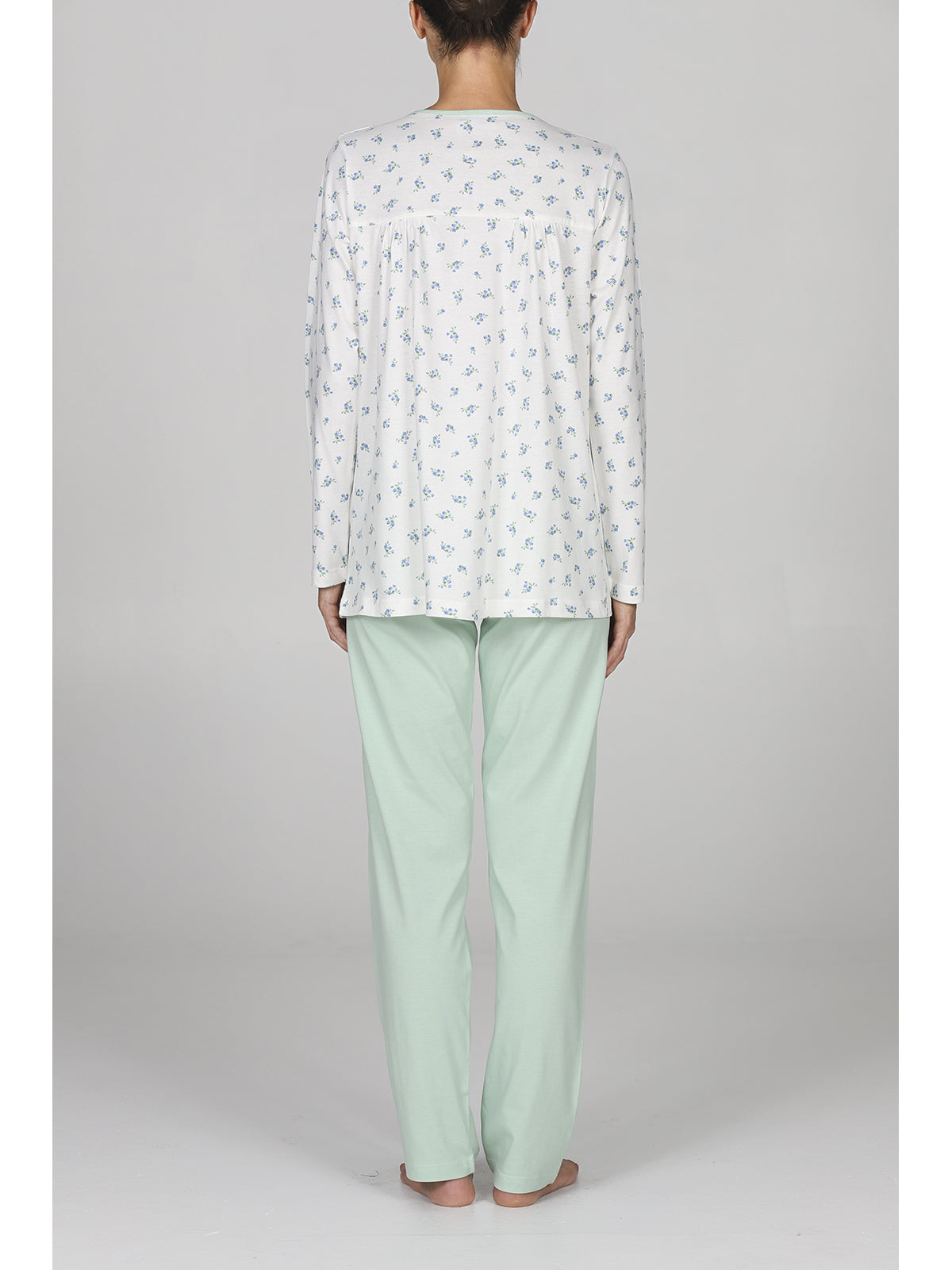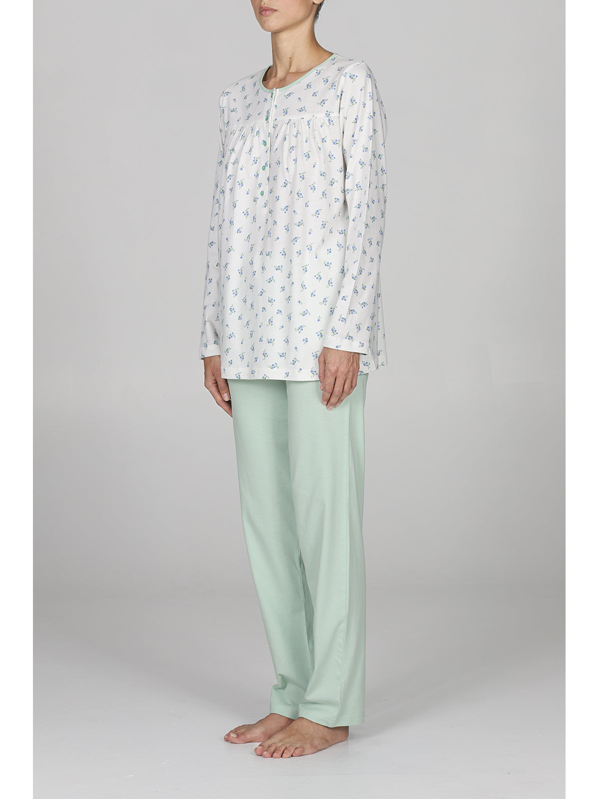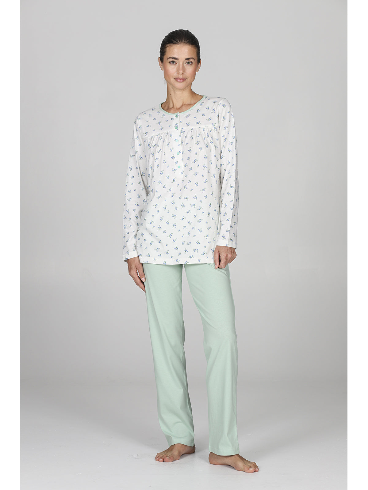 Scopri il connubio perfetto tra stile e comfort con questo pigiamino dal design raffinato. Realizzato in morbido cotone, offre una sensazione avvolgente sulla pelle, ideale per le notti più fresche. Il delicato scollo rotondo e il motivo floreale aggiungono un tocco femminile, rendendolo un must-have per chi ama il comfort senza rinunciare alla classe.