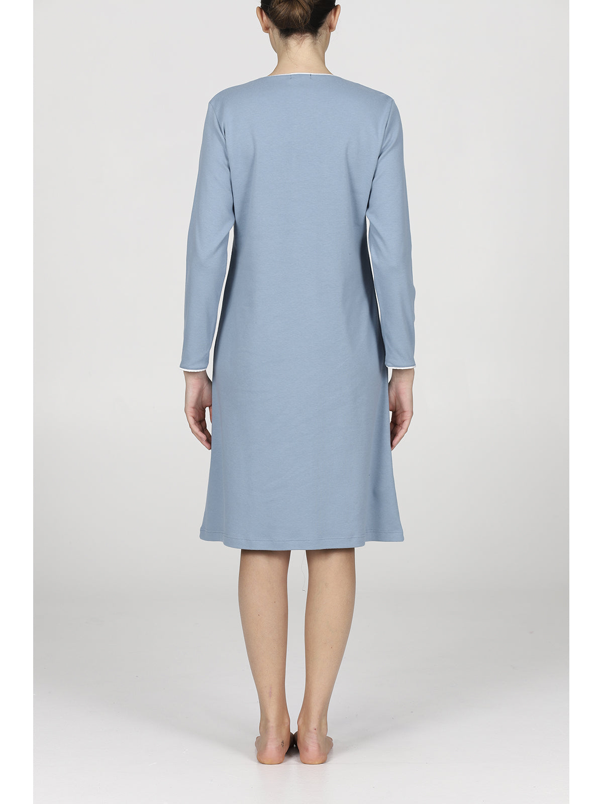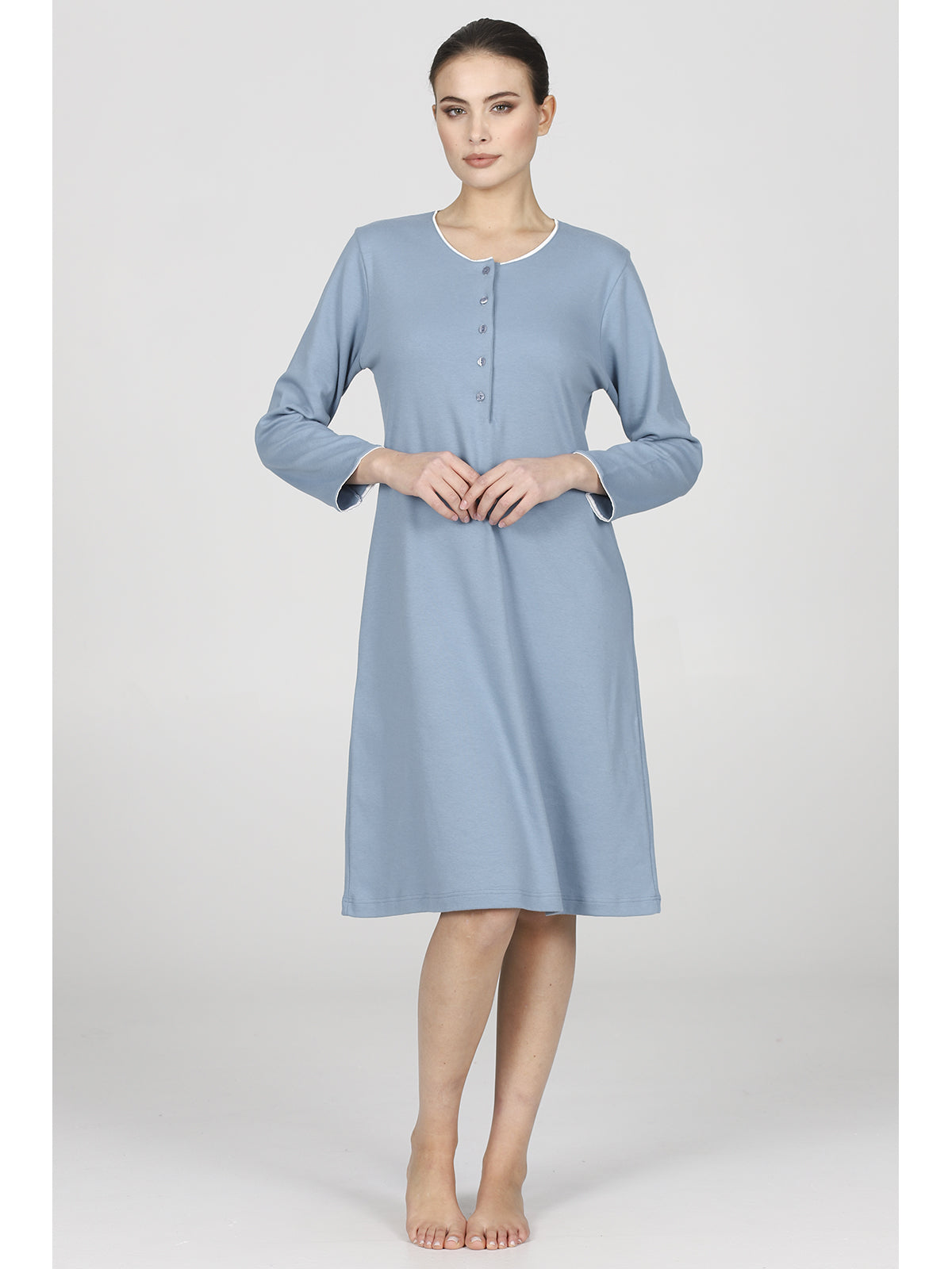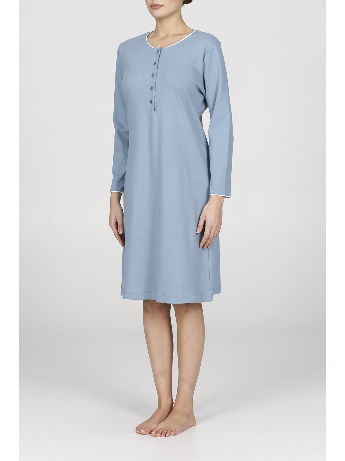 Lo scollo arrotondato e le maniche lunghe aggiungono un tocco elegante, mentre i bottoncini sul davanti donano un dettaglio distintivo. Perfetta per le notti più fresche, questa camicia da notte è versatile e garantisce uno stile sofisticato anche durante il riposo.