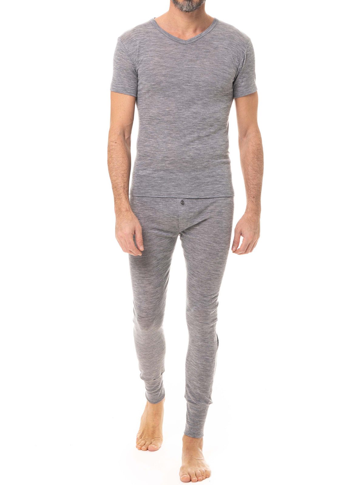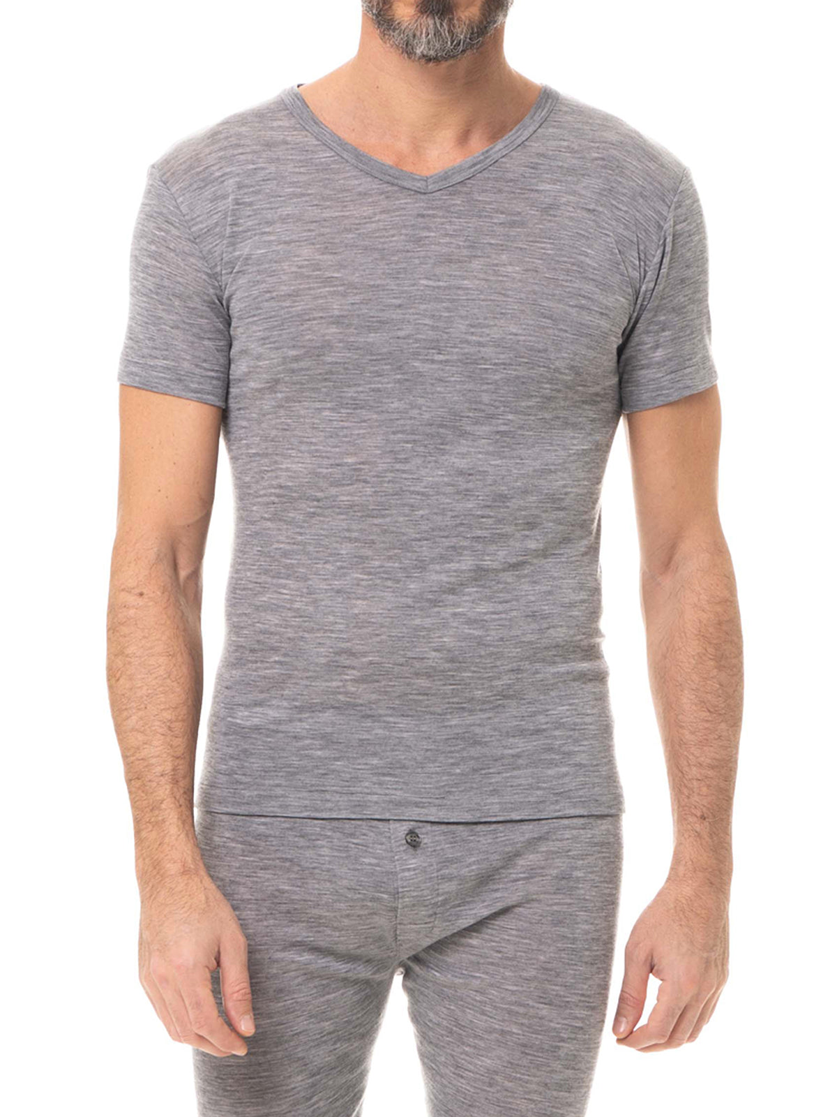 Maglietta uomo collo a V in costina di pura lana merino della Linea Soffio di Lana, adatta anche per gli sport outdoor. Facile da lavare, è leggerissima e con una mano molto soffice. Termoregola in modo ottimale il calore del corpo.