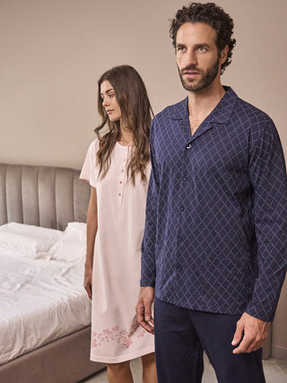Pigiama lungo manica corta in fresco jersey 100% cotone