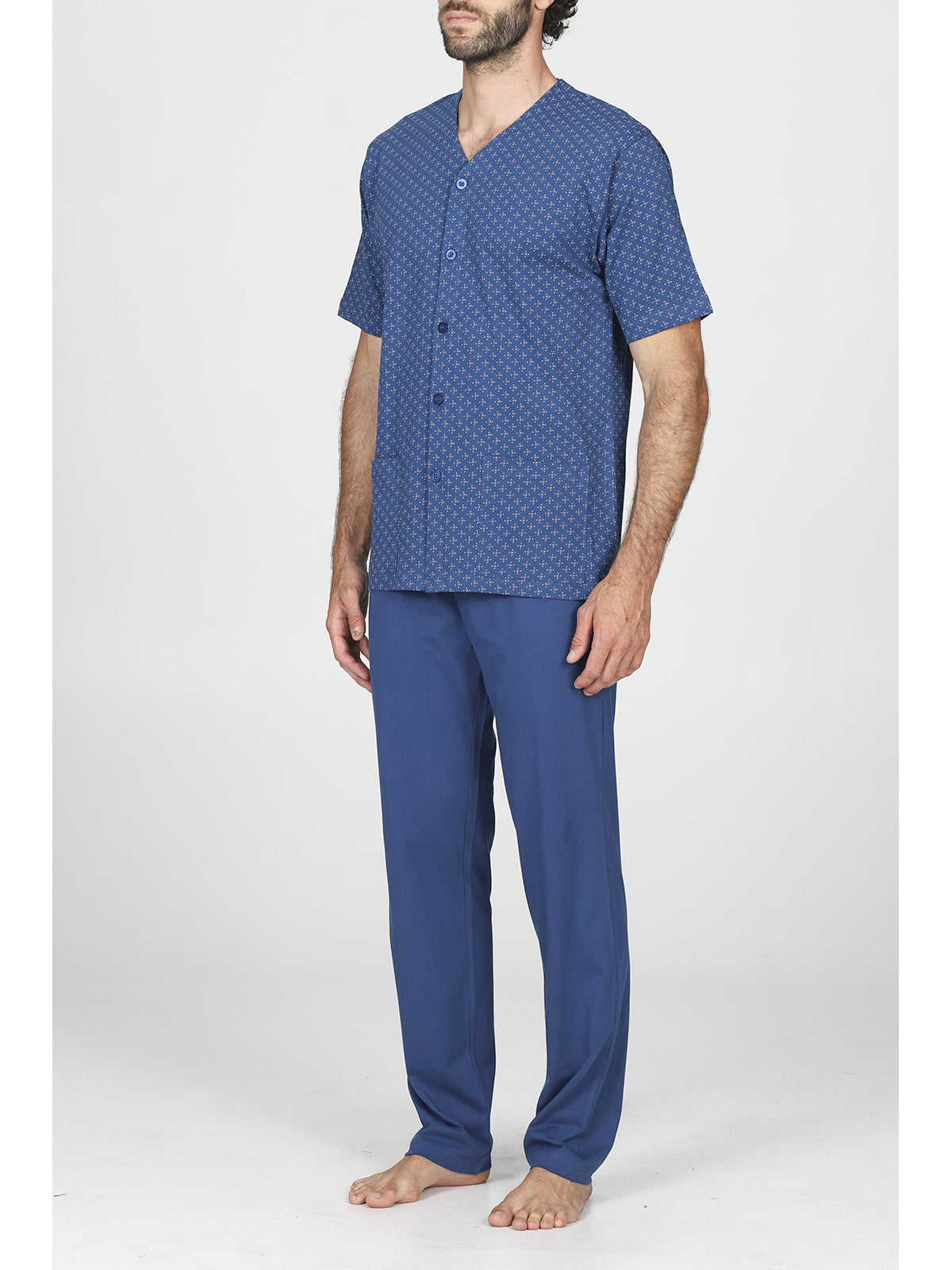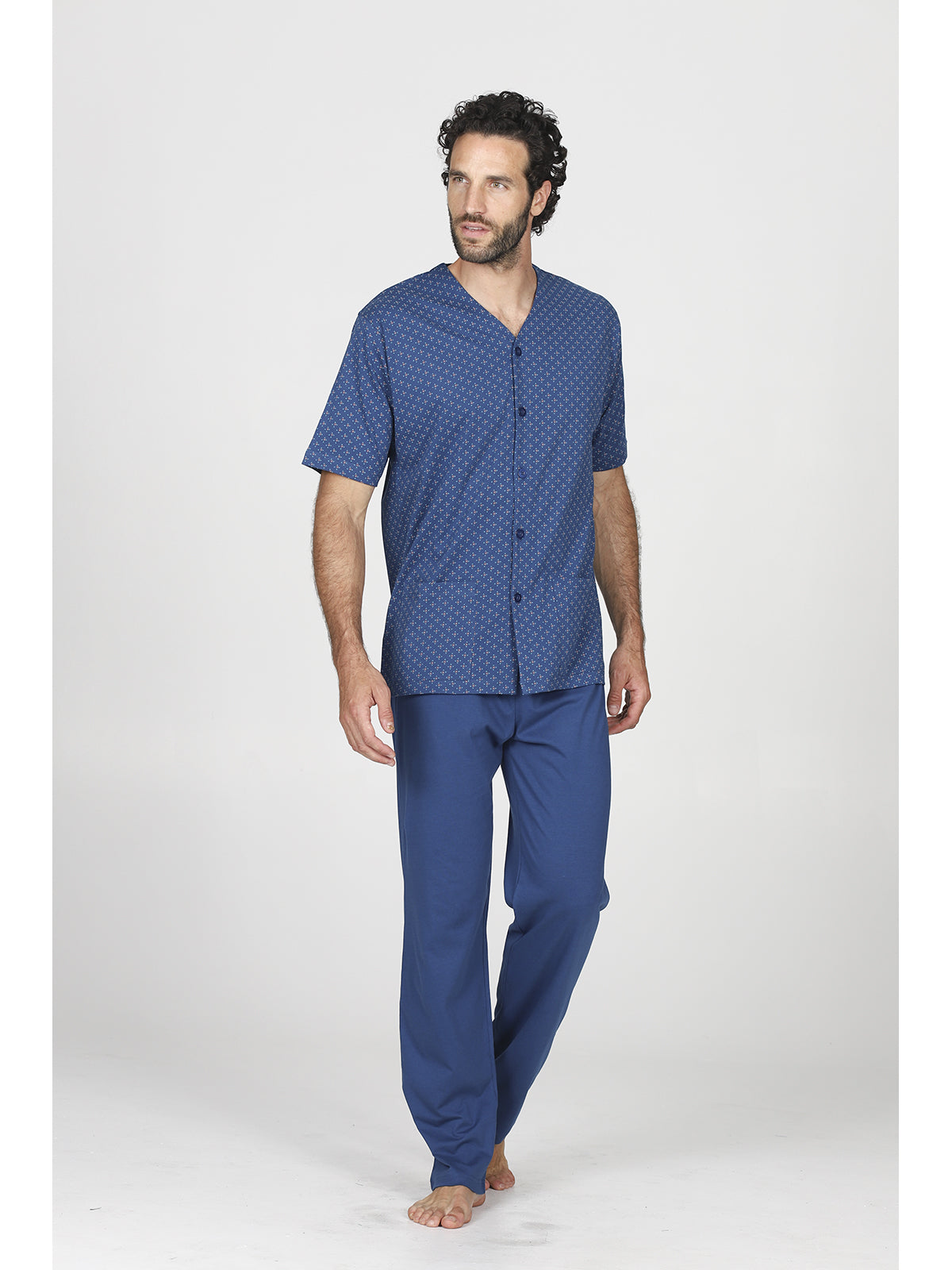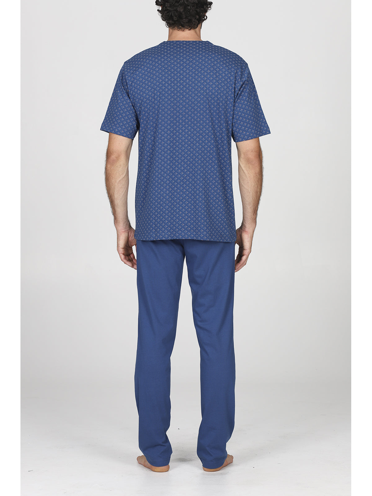 Un capo ideale per momenti di relax, caratterizzato da un design moderno e raffinato. Il pigiamino presenta uno scollo a V, che conferisce un tocco di eleganza, assieme a una delicata stampa. Realizzato con materiali di alta qualità, assicura comfort e una vestibilità ottimale, perfetto per il gentleman contemporaneo.