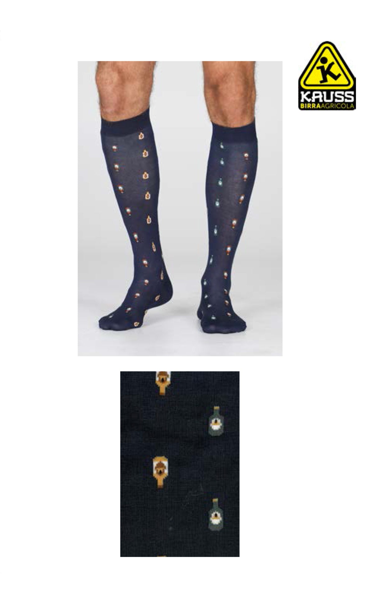 Long men's sock model below the knee in fine elasticized Filocotton. Modern beer bottle pattern created in collaboration with the brand KAUSS. For you, all the quality of Alpina to start the day on the right foot!