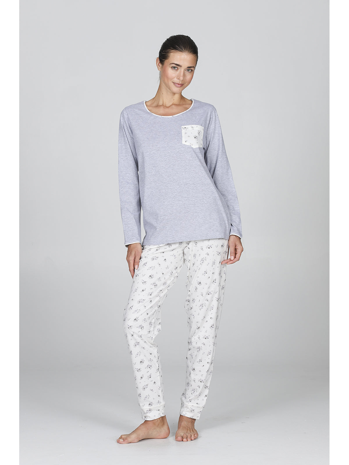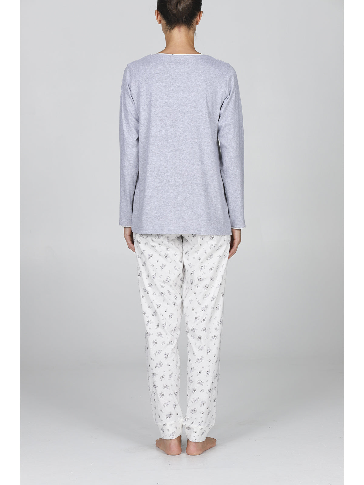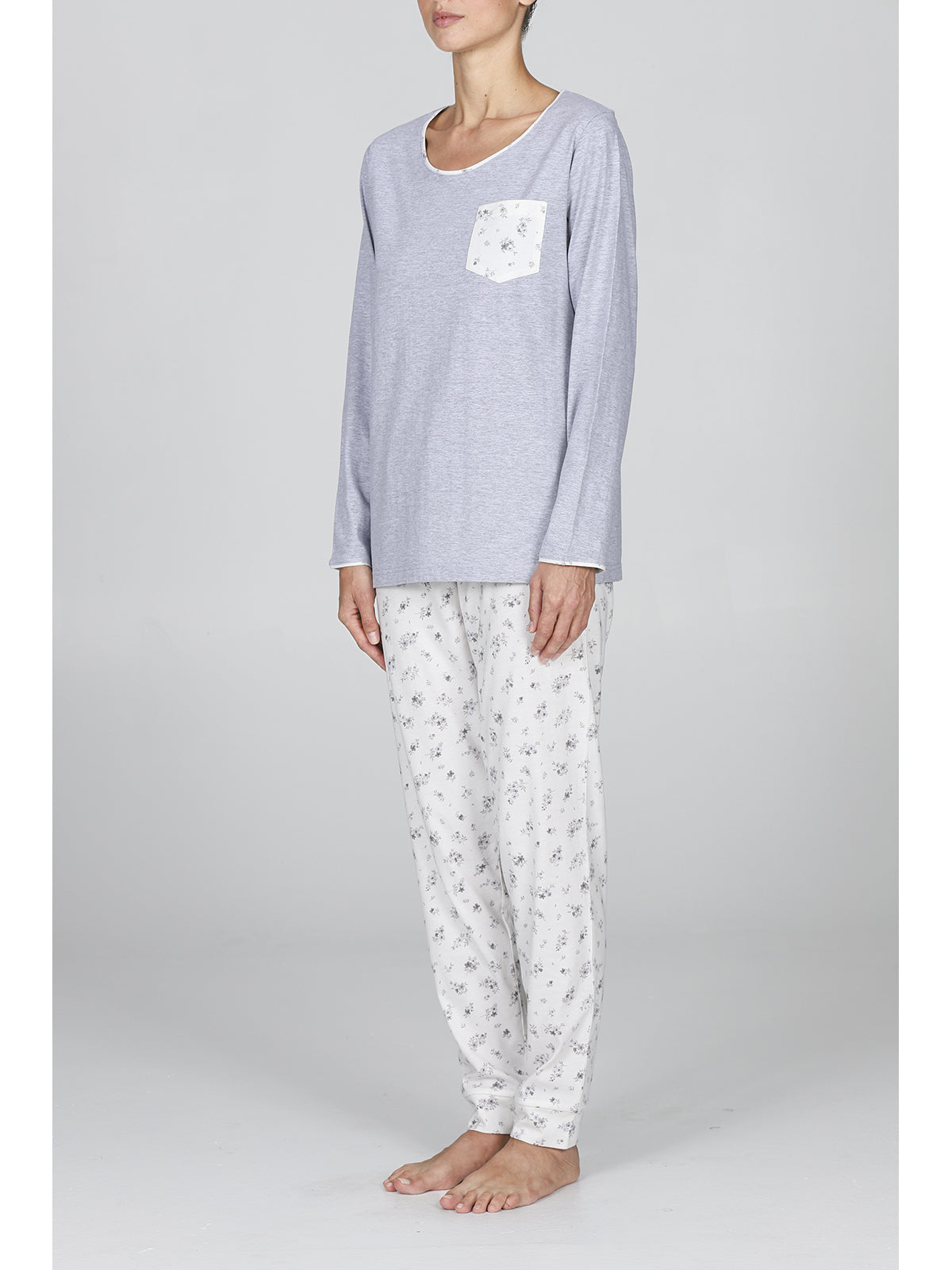 Pyjama long femme à col rond 100% coton