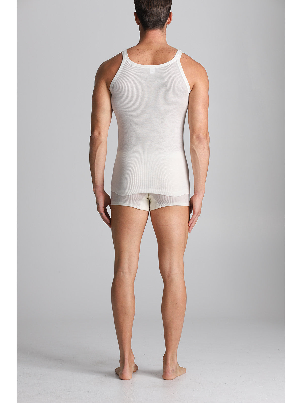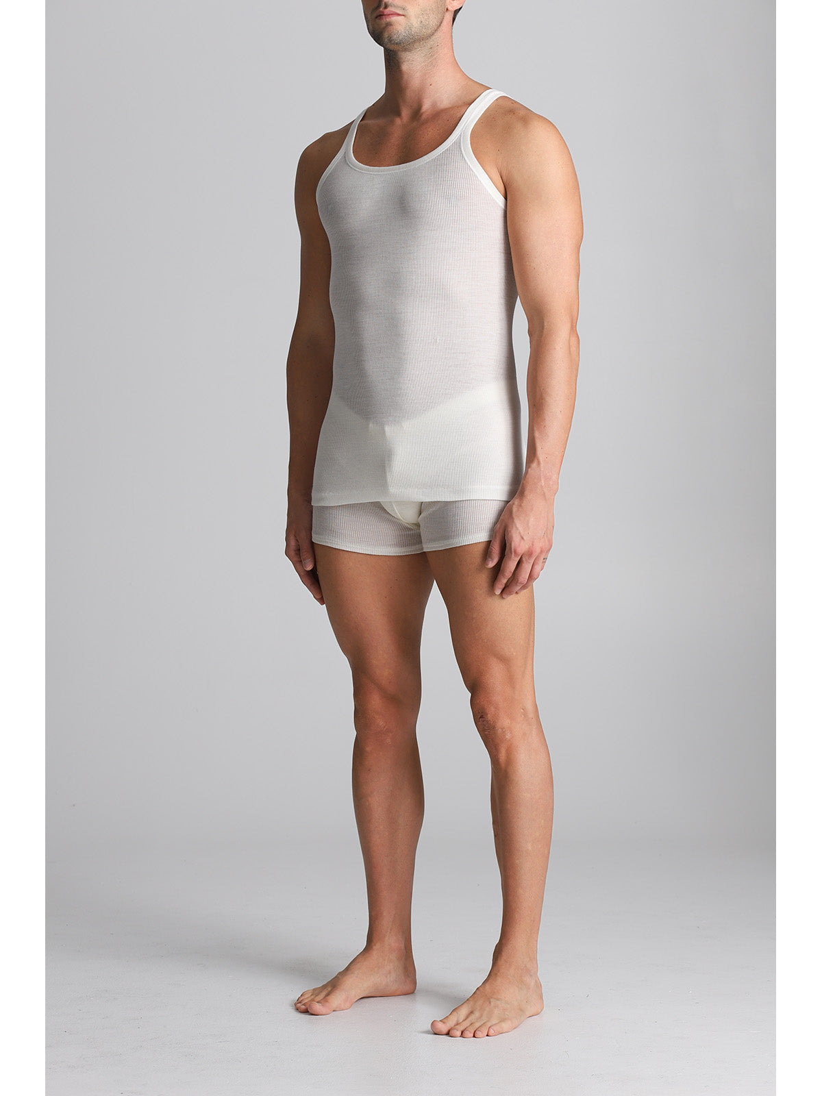 Canotta modello vogatore in costina 2X2 misto lana. Tutto il calore della lana unito alla praticità di altre fibre, per un comfort unico. Stile classico.